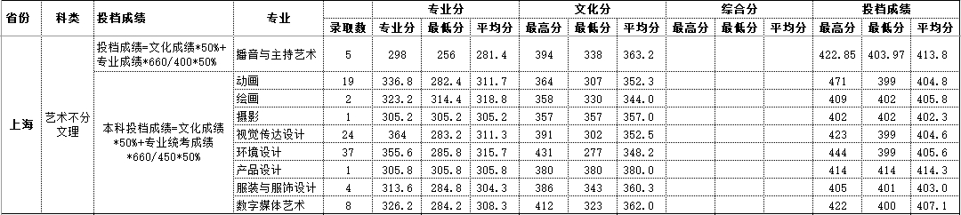 2020年上海 艺术类录取情况
