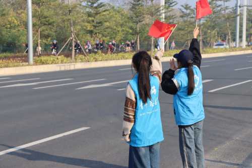 激情四溢的呐喊,不断挥舞的旗帜,这是来自路线加油组的鼓励。一个微笑一次击掌,一句加油跑起来,都让赛场充满了温暖和关怀,在道路上形成一道靓丽的风景线。