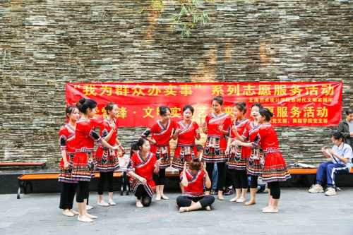 志愿服务活动正式拉开帷幕。舞蹈学院的同学们带来了精心准备的舞蹈节目。他们身着绚丽多彩的民族服饰,迈着轻盈的脚步、展示优美的舞姿,生动地展现了各民族独特的文化魅力,为社区居民带来了一场视觉盛宴。