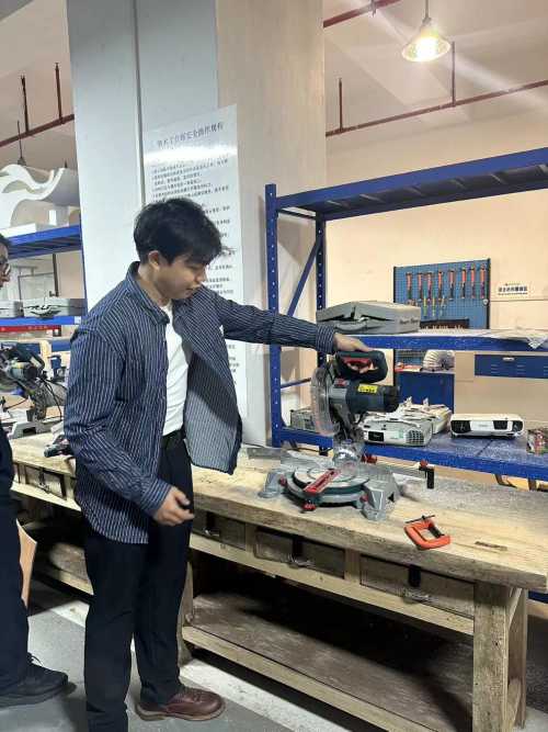 在培训中,教师们首先学习了各类设备的基本操作规范和安全使用注意事项。在使用木工斜切锯时,教师需确保操作者穿戴好劳动保护用品,并避免穿长袖衣物或吊带,长发需束起以免被卷入锯片。此外,教师还需熟悉设备的操作流程,如检查锯片的完好程度、调整锯片高度、调整导条和滑动轨道等,确保操作过程中的安全和效率。