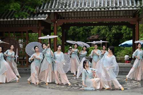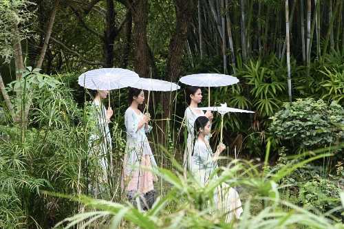 手执雨伞,舞姿轻盈