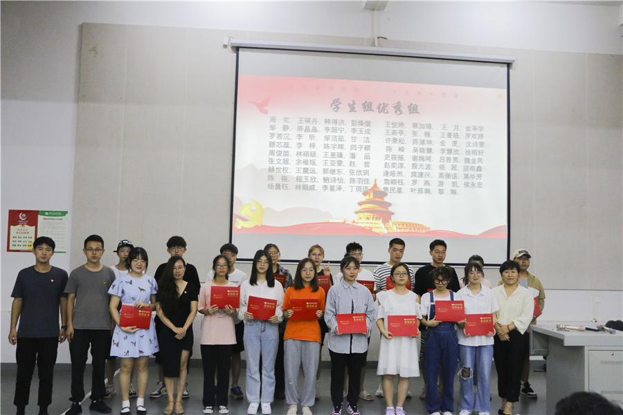 (环境艺术学院第一支部书记顾凯旋、环境艺术学院第二支部书记聂明丽等老师与学生优秀组合影)