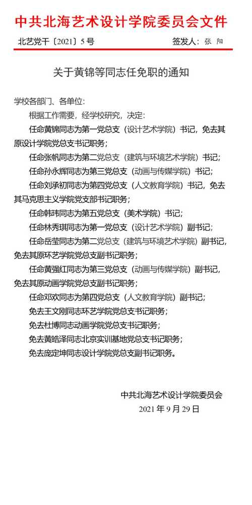 转发学校党委《关于同意中共北海艺术设计学院第二总支部委员会委员候选人预备人选的批复》