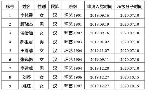 在征求党小组和党员、群众意见的基础上,经支部委员会审查,拟将姚红等9位同志列为发展对象人选。根据发展党员工作有关要求,现将其有关情况公示如下,经党支部培养教育和考察,该同志已基本具备党员条件,在征求培养联系人、党员和群众意见的基础上,经中共北海艺术设计学院建筑与环境艺术学院学生第一支部委员会2022年4月22日讨论同意列为发展对象人选。