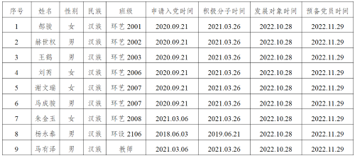 在征求党小组和党员、群众意见的基础上,经支部委员会审查,拟将郝骏等9位同志转为中共正式党员。根据发展党员工作有关要求,现将其有关情况公示如下,同志在预备期间表现良好。经党支部培养教育和考察,拟将郝骏等9位同志转为中共正式党员,并于近期召开支部大会讨论其转正问题。