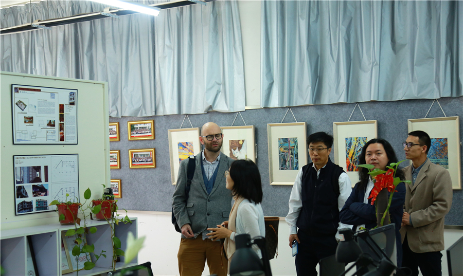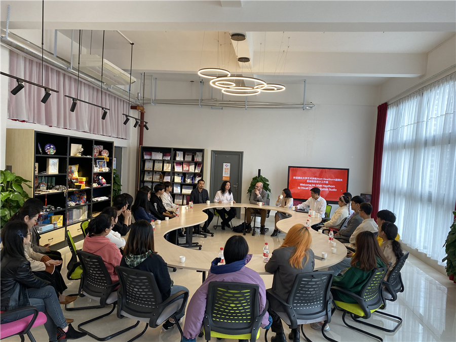 随后,Matt Hawthorn教授走进环艺学院的教研工作室以及教室。与正在课间的师生亲切交流,并在环艺学院的教研工作室和教师进行了座谈。环艺学院副院长王照伟简要介绍环艺学院的情况后,Matt Hawthorn教授表示环艺学院资源蕴藏丰富,教学水平和教学理念也非常先进,在时刻保持着中国特色的基础上与世界一流院校接轨,具有专业的水准。