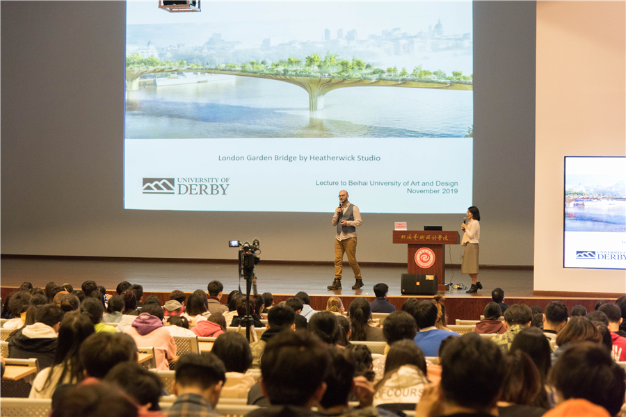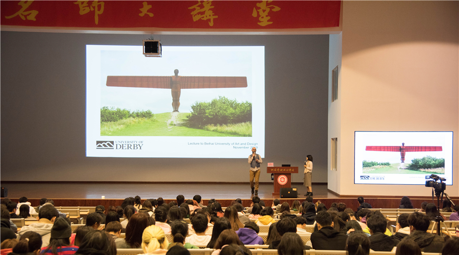 当天晚上在西校区大礼堂,德比大学艺术学院副院长Matt Hawthorn教授还为我校师生带来一场题为《国际艺术设计鉴赏》的精彩讲座,现场座无虚席。本次讲座由胡胜副校长主持。