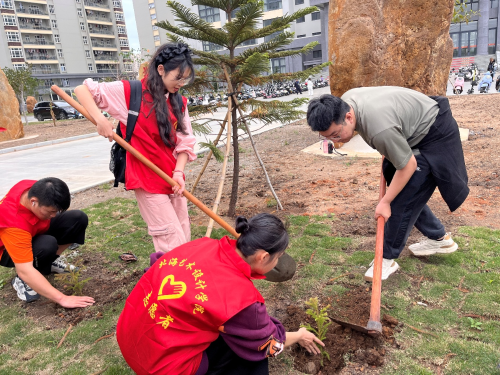 我校团委开展“凝心聚‘绿’,青年先行”植树节活动