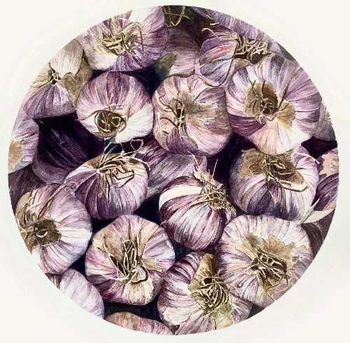 绘画 1906 班 林雯清《蒜你狠》55×55cm 水彩 指导教师:刘广滨、郭珂