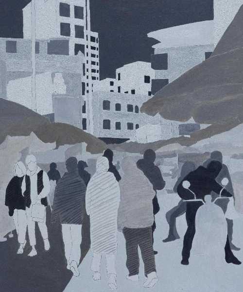 绘画 1903 班 薛丰宝《村市》100×120cm 布面油画 指导教师:袁志伟