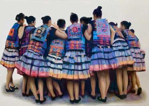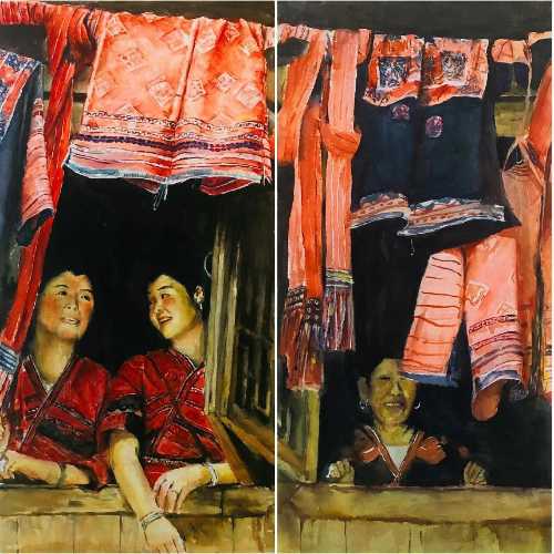 绘画 1906 班 麻镇显《红瑶晒衣节》76×76cm 水彩 指导教师:刘广滨、段凝
