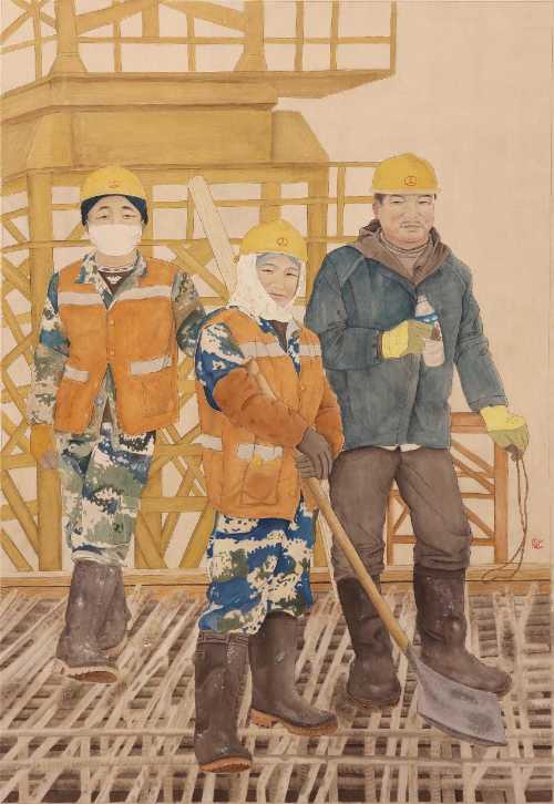 绘画 1901 班 刘清清《匠人》85×123cm 工笔重彩 指导教师:熊晓翠