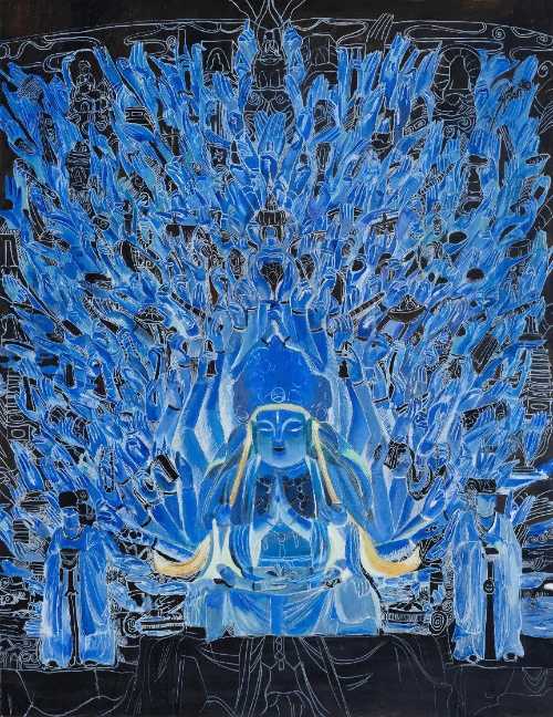 绘画 1901 班 柯钿钿《千禧之缘》100×210cm 纸本岩彩 指导教师:熊晓翠