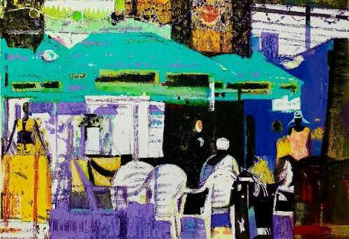 绘画 1904 班 徐进《老茶馆》130×100cm 布面油画 指导教师:张湘中
