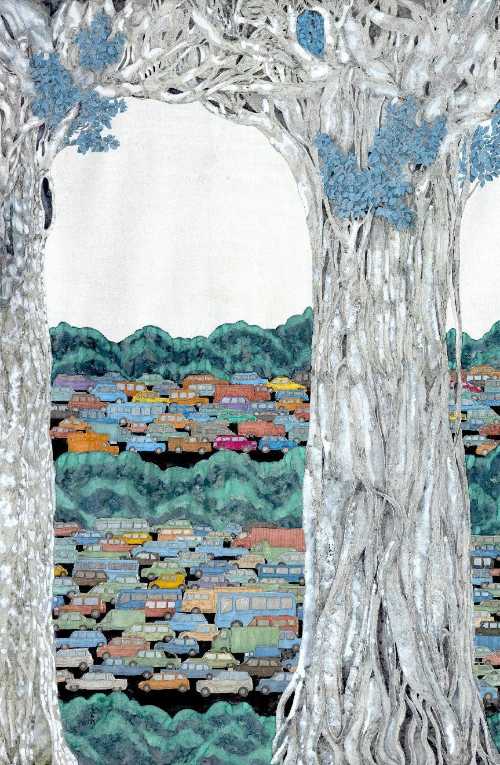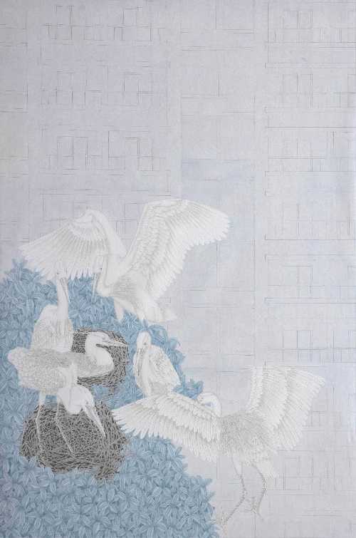 绘画 1902 班 张娜《静·行》170×120cm 工笔重彩 指导教师:陈建江