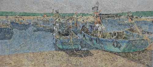 绘画 1904 班 徐志海《海滩上的大船》120×90cm 布面油画 指导教师:张湘中