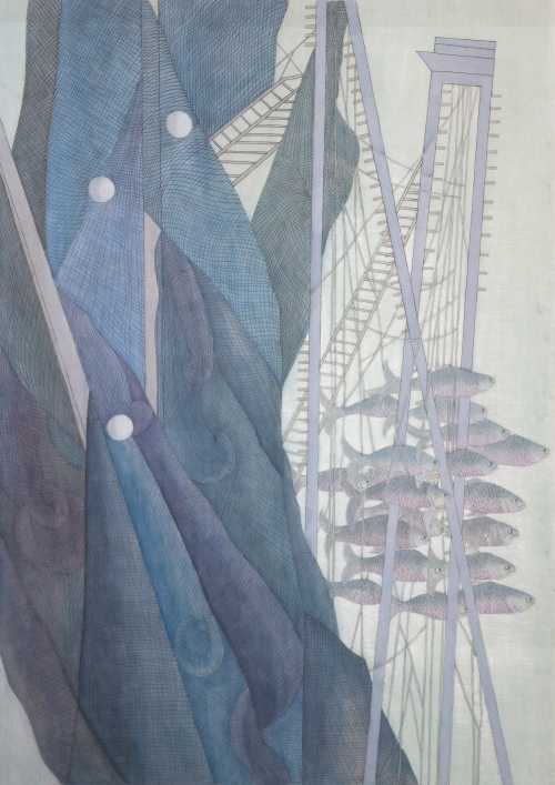 杨圆缘《渔获季节》 53cm×76cm 2023年 纸本水彩