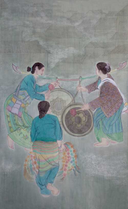 叶辰中《傣乡欢庆》182×115cm 2023年 纸本
