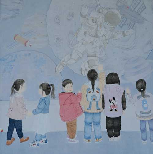韦怡姗《儿时的梦》140cm×140cm 2023年 纸本