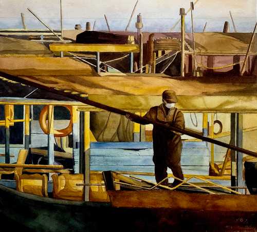 徐盼《船夫》53cm×76cm 2023年 纸本水彩