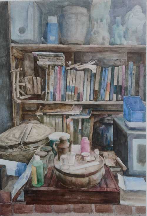 龙以涛《旧书房》50cm×70cm 2023年 纸本水彩