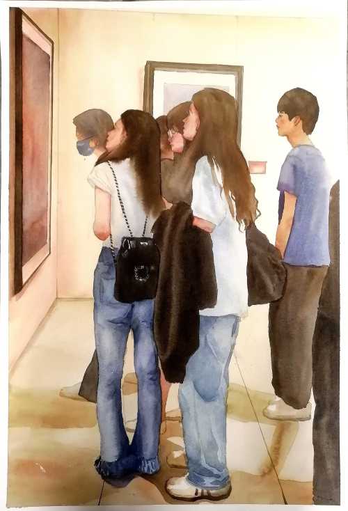 郭梦园 《朝圣的人群》 50cmx50cm 2023年 纸本水彩