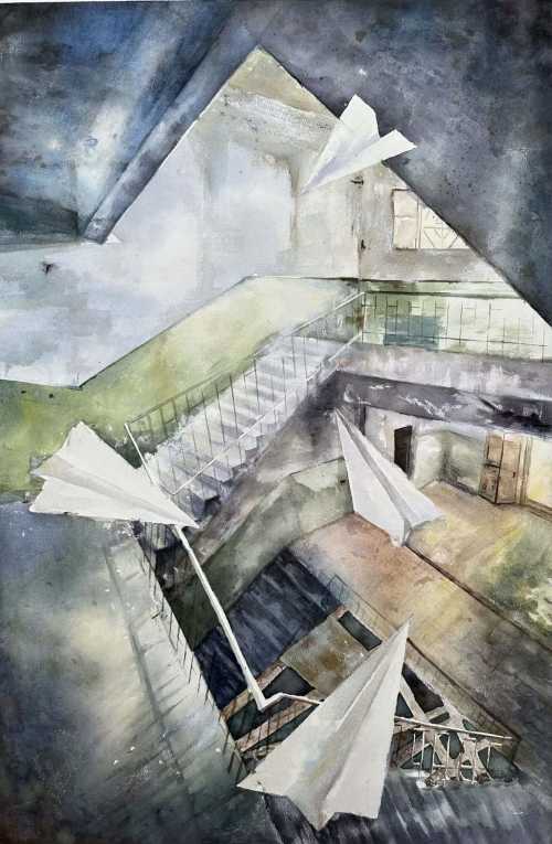 邵俊茹《记忆的小窗》76cm×53 cm 2023年 纸本水彩