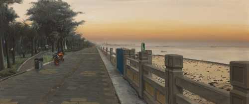 李旋 《夕照港湾》 73cm×50cm 2023年 纸本水彩