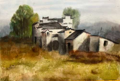 吉克妞牛 《老宅子》 75cm×52 cm 2023年 纸本水彩