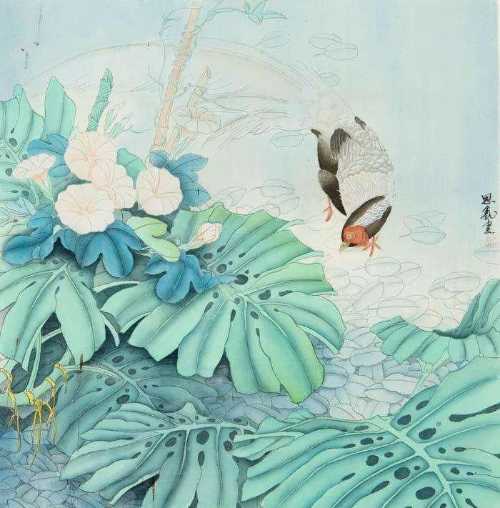 伊能英《临秋树鸲鹘图》35×35cm 指导老师:陈建江