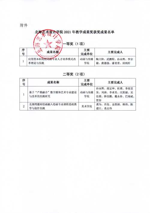 北艺科研〔2021〕17号关于公布2021年校级教学成果奖获奖成果的通知
