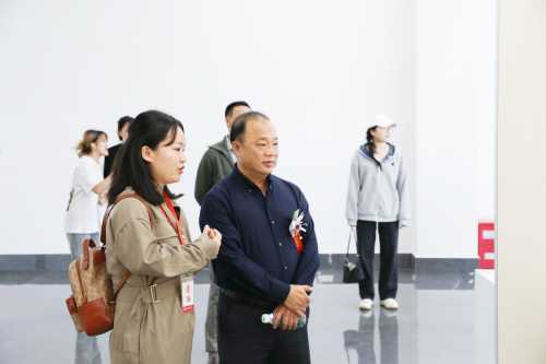 (北海艺术设计学院校长卢新华、建筑与环境艺术学院学生讲解作品)