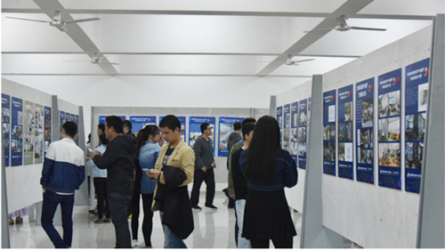 2017年1月6日,是设计大赛结果出炉的日子,银河产业城与北艺环境艺术设计学院的学生和老师,在北艺的礼堂举办了一场颁奖典礼。这次典礼得到了政府、学校以及各界人士的关注,容纳450人的礼堂坐满了人。现场展出的作品有的周正大气,有的中西合璧,让人耳目一新。在方案设计的过程中,同学们从规划建设、功能布局、配套设施、服务体系都进行了全方位的研究,作品的尺寸图都是去银河产业城工地现场量回来的。