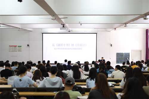 杨冬江教授从罗斯金的《建筑的七盏明灯》这一部关于哥特式建筑的著作中,向同学们阐述了建筑的七大原则,即牺牲原则、真理原则、权力原则、美的原则、生命原则、记忆原则和顺从原则。他提到西方建筑艺术是从文艺复兴时期开始萌芽,到产业革命时期才逐渐成熟。随着社会的发展和科学技术的进步,建筑所包含的内容、所要解决的问题越来越复杂,涉及的相关学科越来越多,材料上、技术上的变化越来越迅速。这需要同学们紧跟时代的发展,创作出更符合当今社会所需的优秀设计。