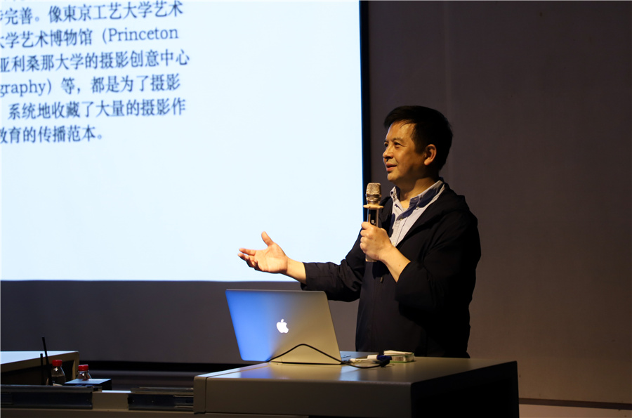 接着,冯教授对比了中西方不同的摄影教育模式,介绍了中西方对摄影学习的不同思路与方法。例如清华大学美术学院“德厚艺精,博学求新”的人才宗旨,培养具有摄影艺术创作、商业摄影、多媒体设计摄影、图像造型及综合实践能力的创新型人才。而国外则更加重视与经典原作“面对面”的教育理念。如日本大学艺术学院的摄影系、亚利桑那大学的摄影中心等,根据教学上的要求,投入大量人力、物力与财力,从典藏作品中精选一些作品,并以不同的主题在学校艺术中心资料馆展示,让同学们直接面对面欣赏名家的经典原作。