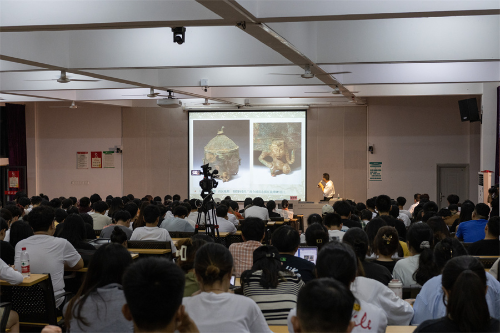 讲座中,廉世明馆长从文物的概念和内涵出发,带领参与讲座的师生深入了解了文创产品是如何完成从设计到制作,最后进行售卖的全过程。