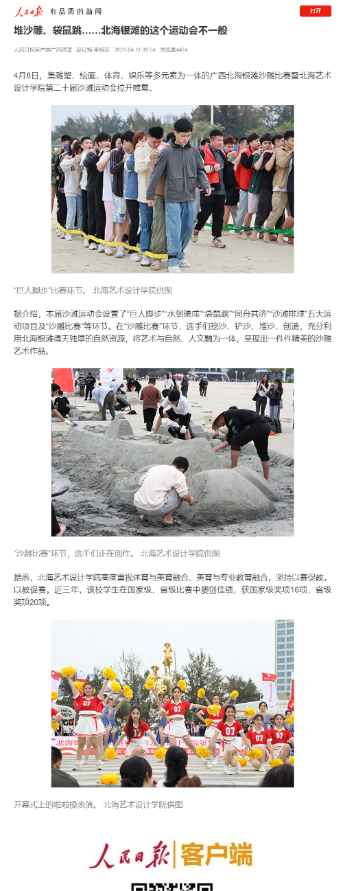 人民网:北海银滩沙雕比赛暨北海艺术设计学院沙滩运动会开幕