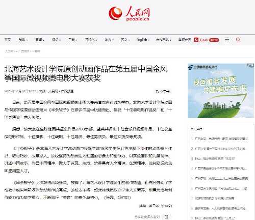 人民网:北海艺术设计学院原创动画作品在第五届中国金风筝国际微视频微电影大赛获奖