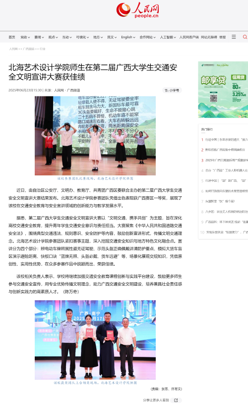 人民网:北海艺术设计学院师生在第二届广西大学生交通安全文明宣讲大赛获佳绩
