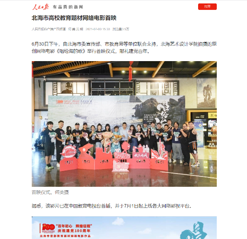人民日报:北海市高校教育题材网络电影首映