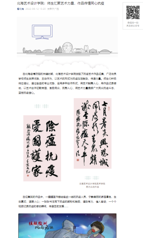 北海广播电视台:关注我校师生汇聚艺术力量,作品传情同心抗疫
