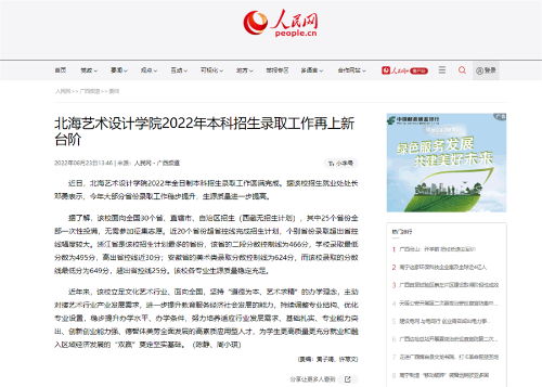 人民网:北海艺术设计学院2022年本科招生录取工作再上新台阶