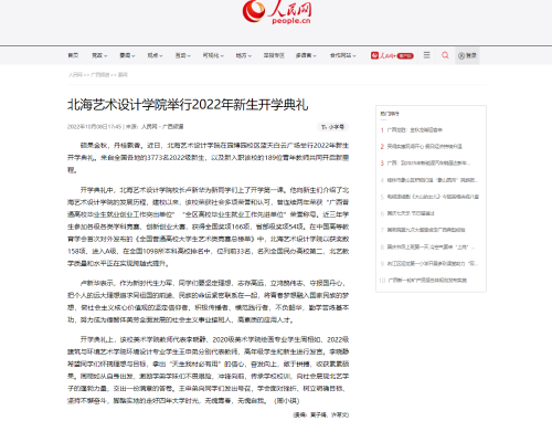 人民网:北海艺术设计学院举行2022年新生开学典礼