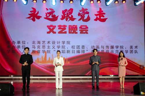 12月26日晚,我校在西校区大礼堂举办“永远跟党走”文艺晚会。晚会由北海艺术设计学院主办,马克思主义学院、校团委、动画与传媒学院、美术学院、人文教育学院“舞蹈剧目编排”课程思政示范教学团队联合承办。学校党委书记范徽忠,副校长陶立阳,马克思主义学院院长姜献生,校团委书记唐良春,人文教育学院党总支书记、院长熊秀峰等出席晚会。同时,本次晚会面向全体党员、发展对象和积极分子。