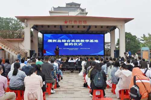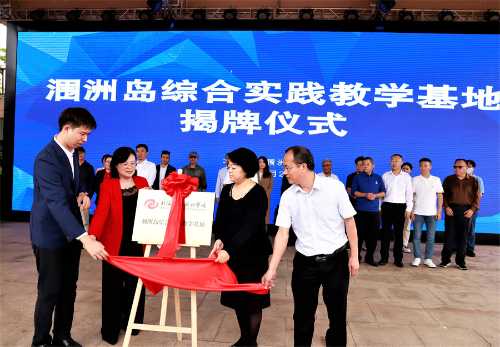 我校董事长郑念贻、涠洲岛旅游区党工委副书记沈振华代表双方进行协议签约,并与张阳、张实四人共同完成揭牌。
