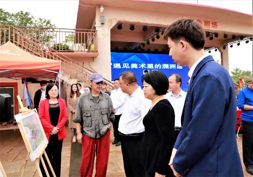 会后,双方领导一同参观“遇见美术里的涠洲岛”画展。