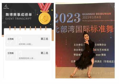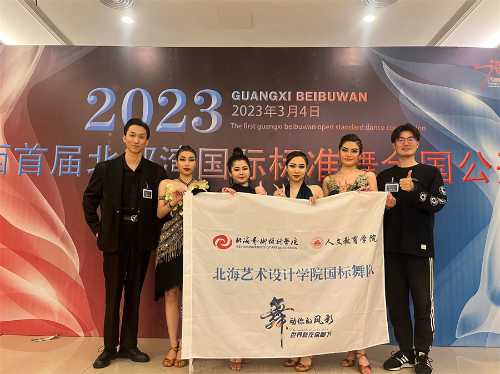3月4日,中国·广西首届北部湾国际标准舞全国公开赛在广西南宁正式开赛。由人文教育学院舞蹈表演专业(国标舞兼修)学生潘宏、丁小丫、王雨嫣、王雨桐组成的北海艺术设计学院国标舞代表队,在青年教师李晓飞和周琦涵的带领下出战比赛,一举斩获冠军8项、亚军2项、季军2项、殿军1项的佳绩。