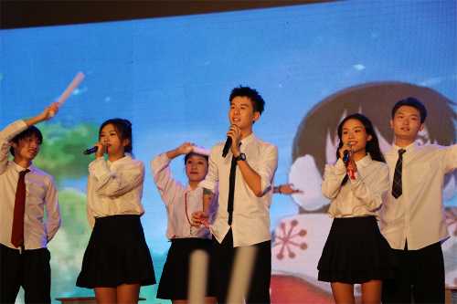 由校团委老师带来的《相亲相爱》,述说着北艺师生温暖的日月相处,现场掌声、呐喊声不断,挥舞的荧光棒瞬间点燃现场热情气氛。