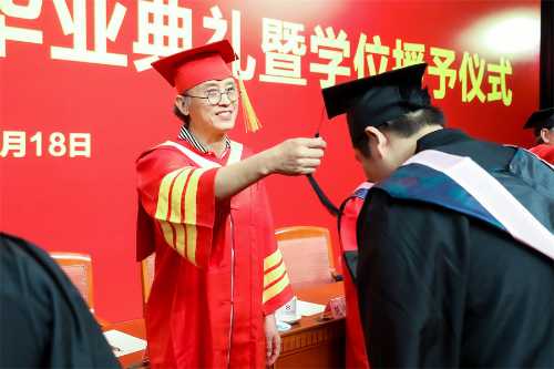 典礼上,学校学位评定委员会委员为毕业生代表颁发毕业证书和学位证书并一一拨穗正冠,合影留念。师长声声祝福温情入耳,眼含欣慰扶手相送;学子毕业礼成,意气风发,振翅高飞。