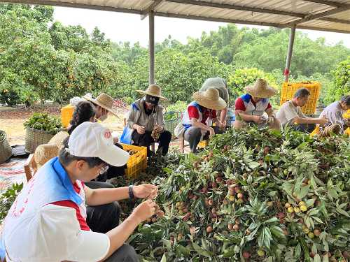 近日,雷暴雨导致合浦县红锦村担水村数百亩花生、荔枝受灾,我校40余名志愿者深入地头田间,在恶劣天气下帮助乡村老人抢收花生,采摘、打包荔枝。